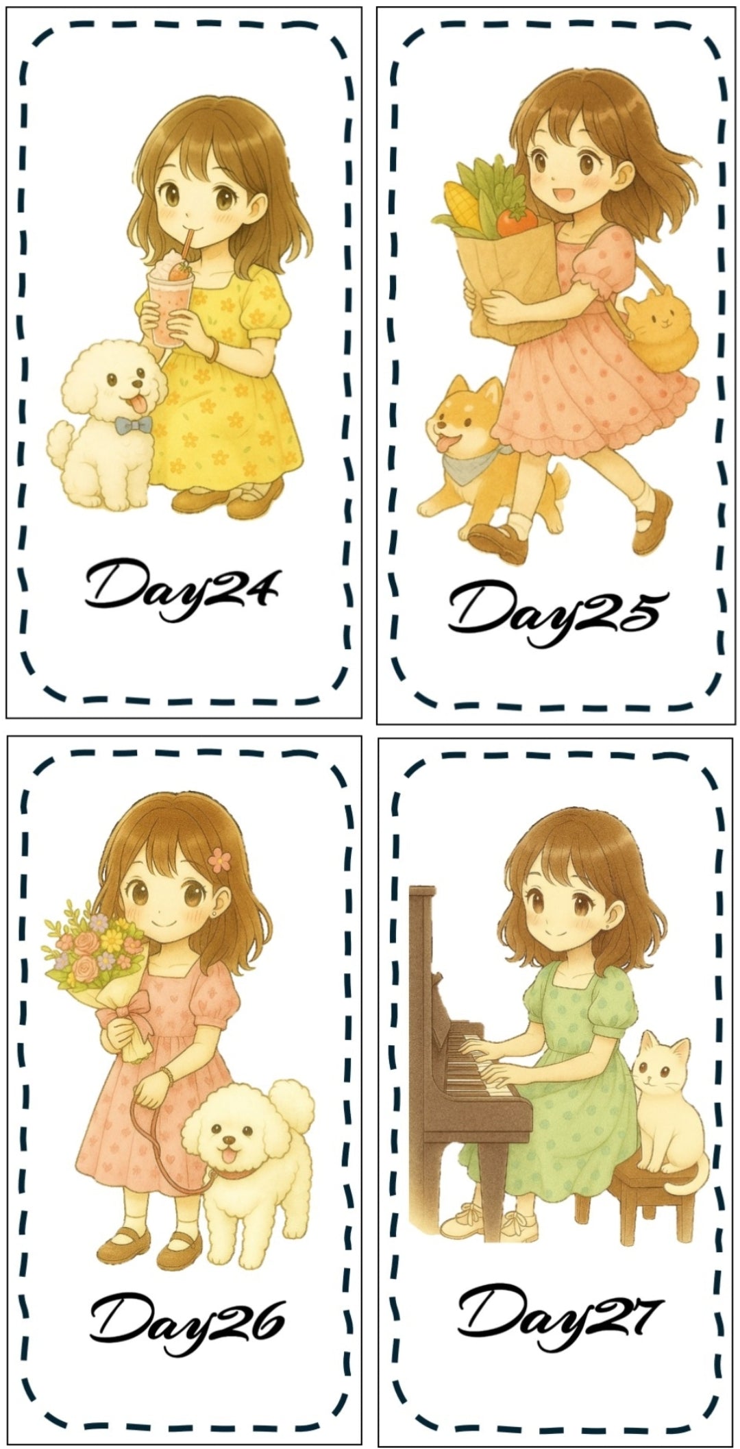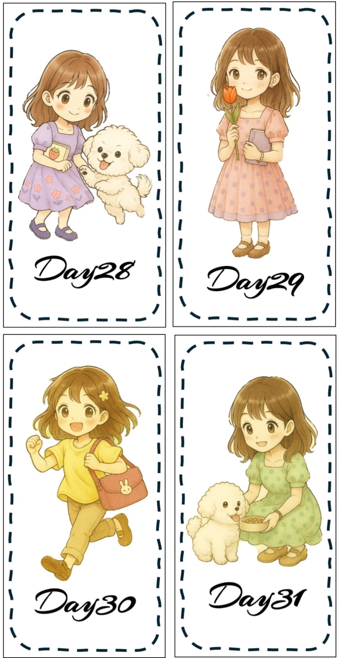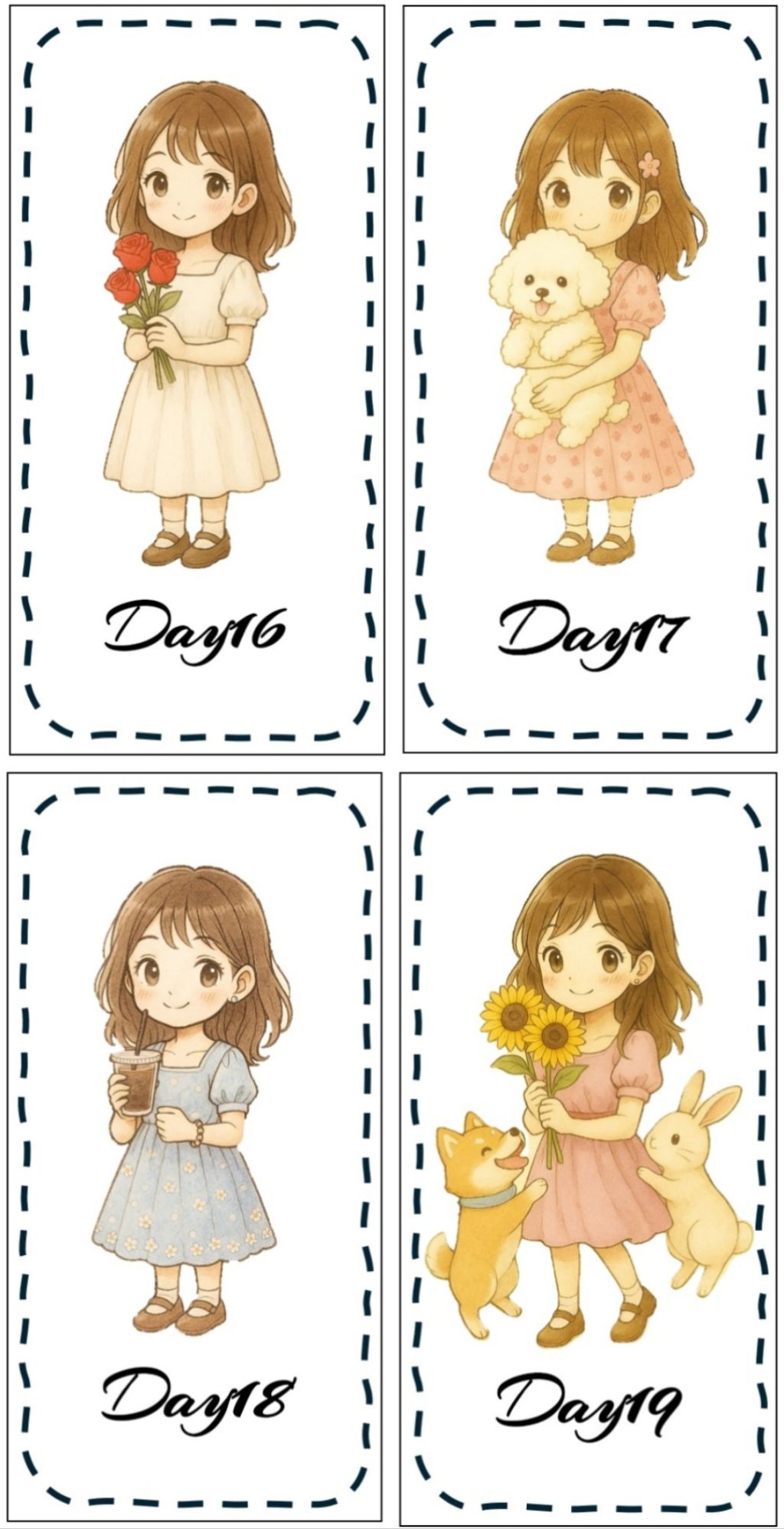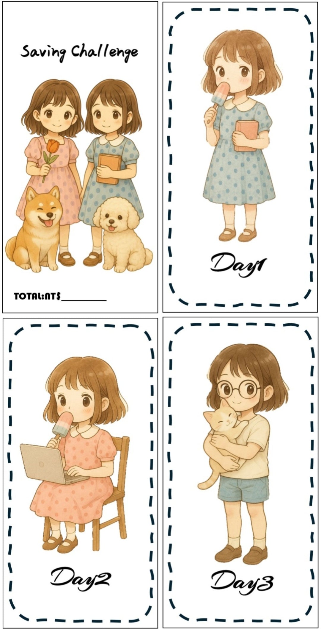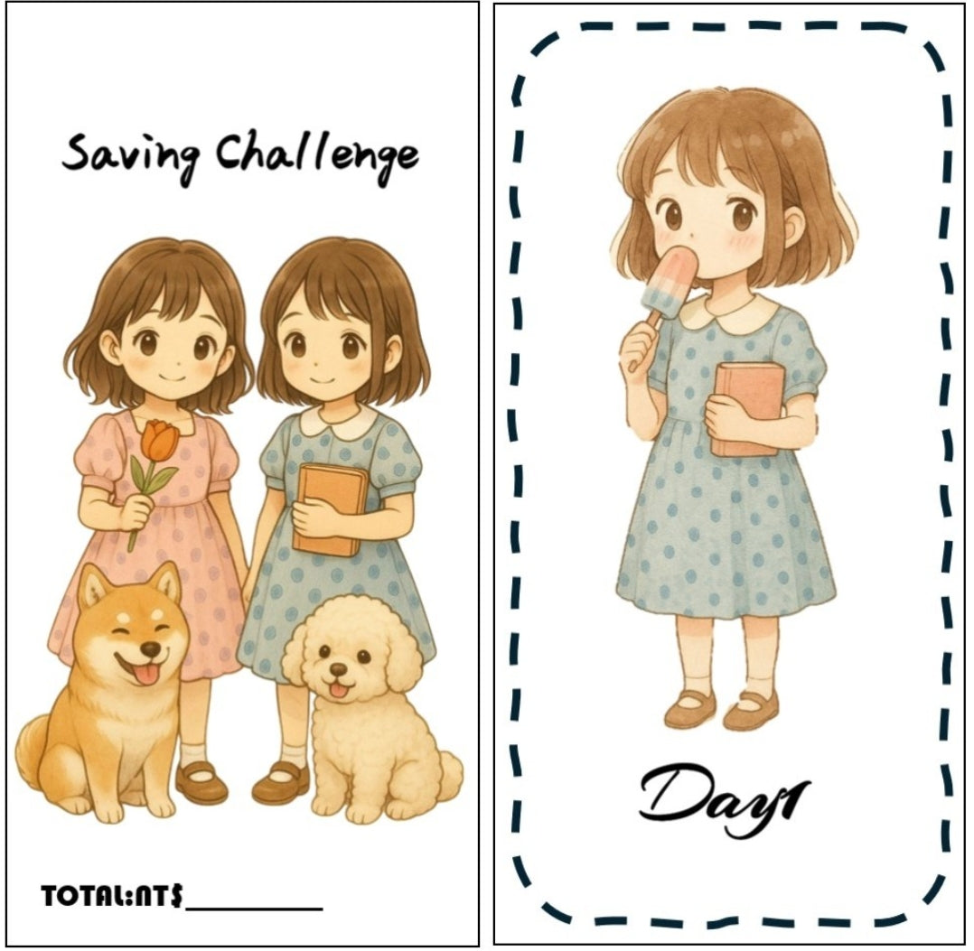 這款A6大小的存錢袋,以療癒可愛的手繪風格呈現,女孩與寵物們的日常互動畫面溫暖動人,每一天都是一段甜美的小故事。不只是存錢工具,更是激勵你每天儲蓄的動力來源!